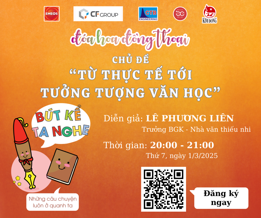 Tối thứ 7 ngày 01/03/2025 vừa qua, workshop online đầu tiên trong chuỗi chương trình Bút kể ta nghe đã chính thức diễn ra với chủ đề “Từ thực tế tới tưởng tượng văn học”. Buổi workshop thu hút đông đảo sự quan tâm của các bạn trẻ yêu sáng tác và phụ huynh trên toàn quốc, nằm trong khuôn khổ các hoạt động đồng hành cùng cuộc thi Đóa hoa đồng thoại năm 2025.